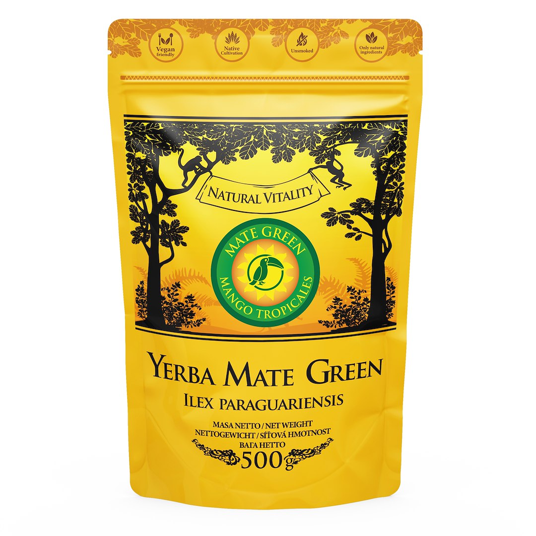 Brazylijska Yerba Mate Green jest szlachetną odmianą ostrokrzewu paragwajskiego. Smak tej mate jest delikatny, wynikający z harmonijnego połączenia ostrokrzewu oraz owoców. Lekko owocowy aromat pozostaje przy wielokrotnym dolewaniu wody do tej samej porcji suszu. Owocowe składniki nadają tej kompozycji dobrze wyczuwalny aromat i smak, w którym gorzka nuta jest zbilansowana tak, że powstaje napar dość mocny, jednak nie gorzki. Zdecydowany smak ostrokrzewu koresponduje tu ze słodyczą owoców mango i ananasa. Nuty owocowe są mocniejsze w kolejnych zalaniach. Mate Green to bestseller, najlepsza yerba mateYERBA MATE - właściwości, pochodzenie i wytwarzanie z rodzinnej plantacji w brazylijskim tropiku. Oznacza się dużą zawartością naturalnej kofeiny i naturalnym roślinnym smakiem, duże kawałki owoców mango bez sztucznego cukru, zachwycające połączeniem słodyczy w smaku i zapachu dodający egzotycznego charakteru bez dodatku sacharozy.